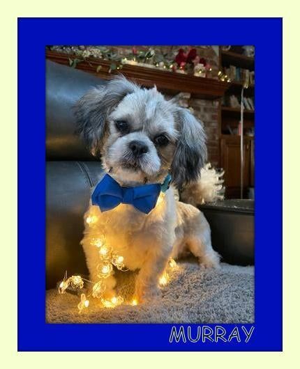 Two weeks ago a friend of mine went to an auction in KC...she does transport for Westie rescue back East and while there, felt it imperative to save two dogs from an even worse situation then they were in...going to yet another greedy and uncaring breeder. They had numbers on tight little chains around their neck, and this little guy is number 54. His pal, number 3 was adopted today, and Murray is greatly missing his friend. Murray's papers say he is a 3 yr old Shih Tzu who is now neutered and has been groomed. He is looking a bit rough because his body was long and matted, and someone had shaved his face before the auction. Our groomer evened him up and he will be gorgeous when everything grows out and matches. Most of the mill dogs we get are terrified and shrink from people, but Murray blossomed after about three days and now prances around and wags his tail continually....loving everyone he meets. He weighs around 12 lbs and has a beautiful curly gray and white fluffy coat. I love it when people ask me if he gets along with other dogs, and I ask if 50 is enough to make a determination. Cats...we do not have any. I doubt he is Cujo around cats and he is not housebroken. How could he be???? His adoption fee is higher than usual because we have to reimburse the woman who bought him. So, we can discuss his fee with serious people...not just window shoppers!!