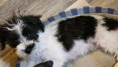 Pico came from a puppy mill where we believe he was abused...possibly hit in the head. Where he is fine most of the time, playful and sweet, he can be very grouchy and growly for no reason. He is easily distracted but he is a dog for someone seasoned in this kind of small dog. He is not for someone expecting a predictable sunny personality but he adores being a lap dog and would be happy to be petted all day long.
