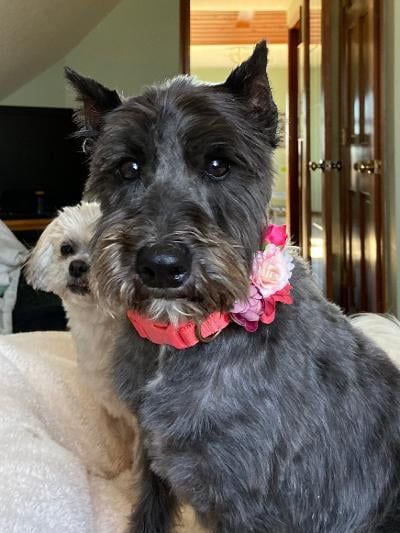 Annie came to us in a state of severe starvation. She was literally a rack of bones. The vet could not even give her vaccines until she gained weight, so I went into overdrive. I cooked rice, ground beef, boiled chicken, etc and fed her four times a day. In addition, she was heavily matted and one of our volunteers worked for hours until she was able to be professionally groomed. She had whip worms and had to be treated for that. Finally, she has been spayed and current on all shots and heartworm negative. Annie is such a delight....we adore her and she will only go to a home where she will be spoiled and loved. Annie weighs 18 lbs now and is a purebred miniature Schnauzer, and I cannot say she is totally housebroken, so if that is a requirement, please pass on this dog and all of our dogs. I never give a guarantee. I feel we take in dogs, give medical care, rehabilitate and socialize them so the new family must take on responsibility for training.