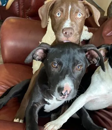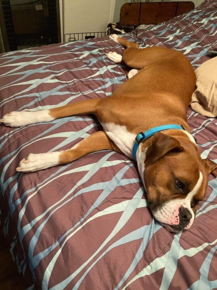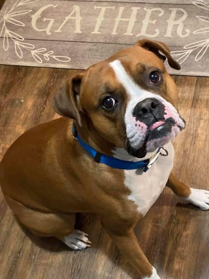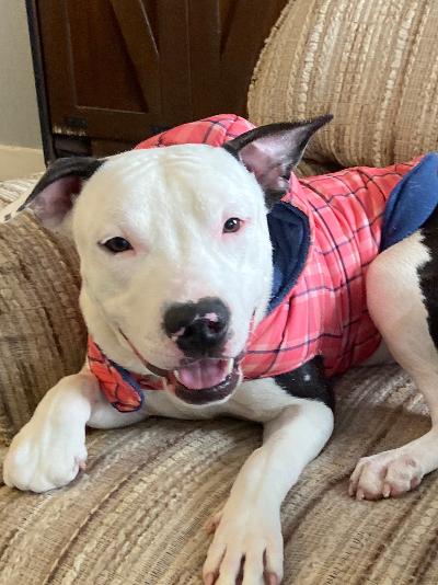 Fonzie was adopted to a family with four year old twins. They adore him but mom was gone all day and the yard and house were small and he became bored and got to excited playing with the kids. He has no aggression but is lively outside and if he gets enough exercise, he is fine in the house. We love him and just fee like an active family will get much joy from having him as a pet. He LOVES rolling around with other dogs. If interested go to our website scarsusa.com and fill out an app