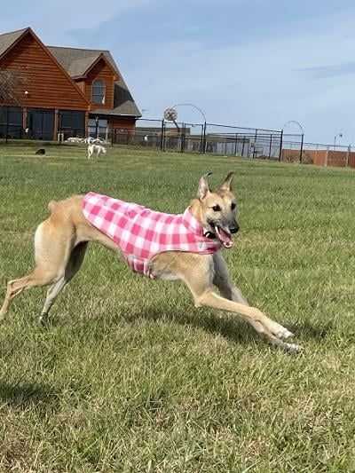 Milo came over to play with all of our dogs last night and had a blast. He is 11 months old and only weighs 20 lbs and will not get much bigger, if at all. The only apps I have had on him are people with no other dogs, and a cat. This will not work. He LOVES playing and running with other dogs so that will be crucial. Think about this cutie and fill out an app.