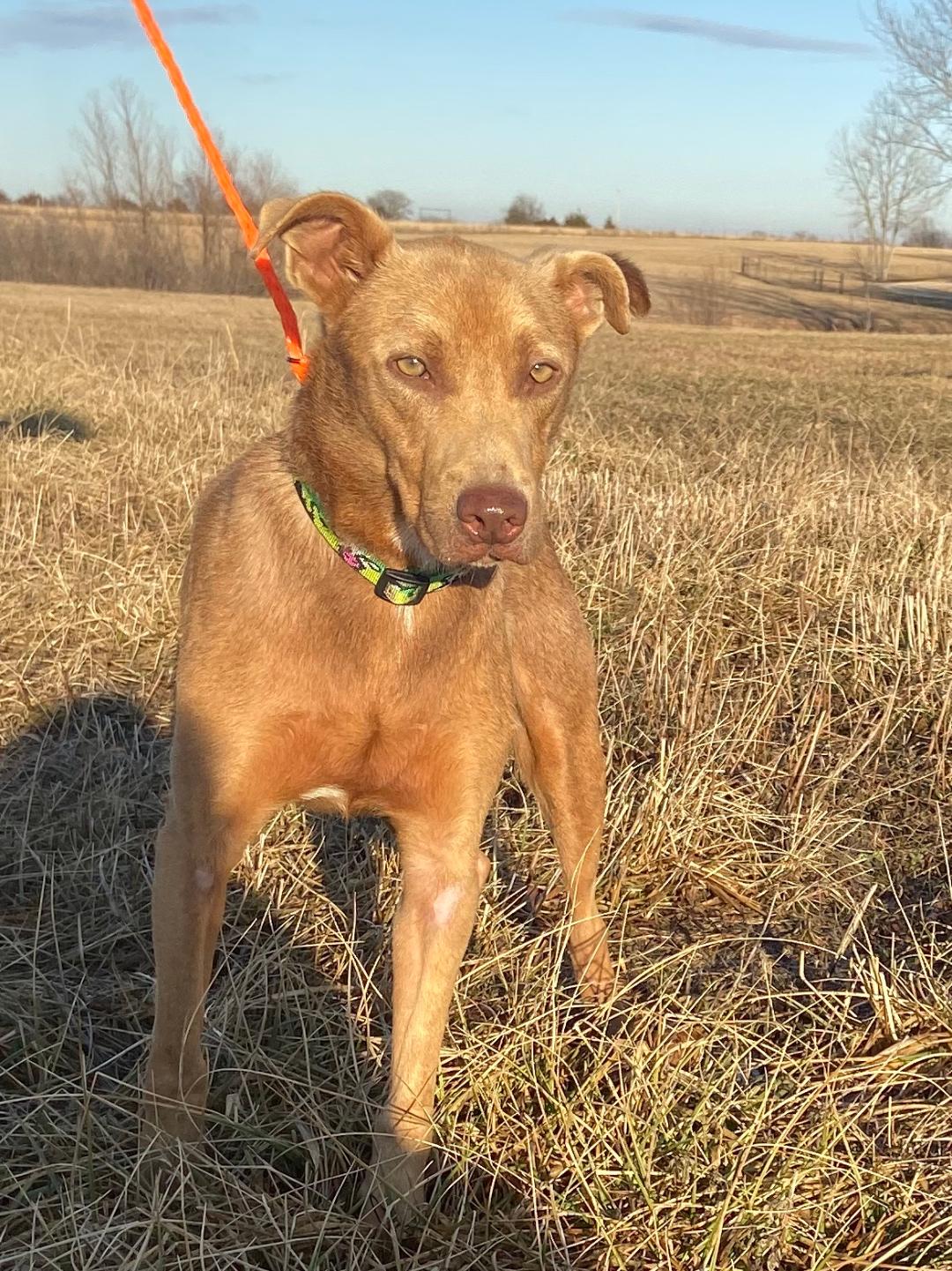 Red was left to starve in a dirt pen and rescued after being there most of the winter. When I picked him up and took him to the vet, I was told he only had a few days to live. But Red was a fighter and he gained strength and weight and is now a beautiful dog who appears to be a mix of perhaps a Visla and lab..who knows. He is 3 years old, neutered and has had all of his shots. Red will need someone who will take the time to visit him several times, spend time petting him and gaining his trust. Once he knows you, he is incredibly loyal and affectionate. He is fine with other dogs and we do not have cats here, but I imagine he would be OK.