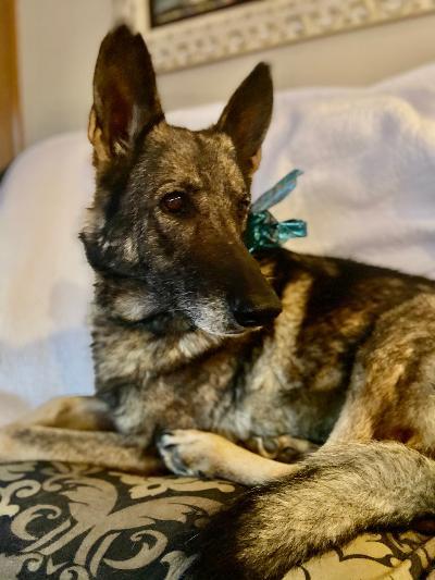 Lola is a gentle, kind and well behaved twelve year old German Shepherd. Her owner moved and did not take her with him, so she is in need of a safe place to land. She is being fostered with other dogs and some cats and does wellwith them and children also. Despite her age, she is in good health and plays outside with the other dogs. However, she prefers to spend most of her time on the couch watching TV!!!