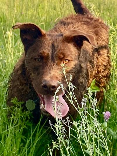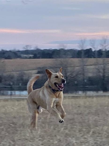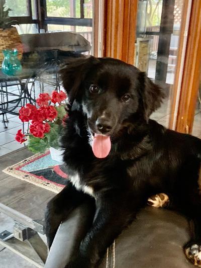 Snoopy is a 30 lbs exuberant puppy. He loves everyone but is a bit too puppyish. He is very energetic and jumps around, but really well behaved in the house. I have left him most of the day and he never moved from the couch. Of course, he gets tons of exercise here on 50 acres with two ponds so he would have to be kept busy. He needs another friend to play with so do not fill out an application if he would be an only dog.