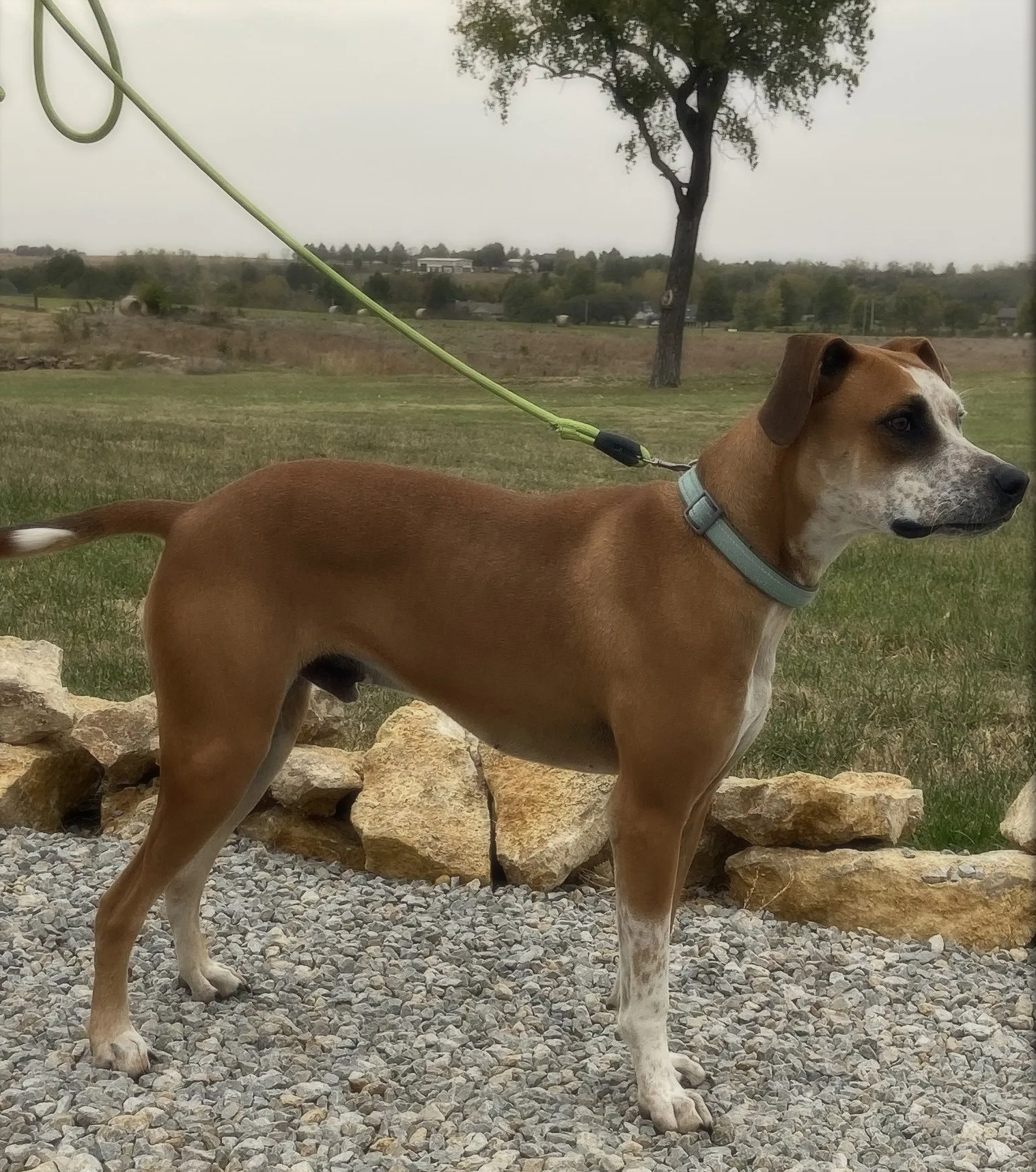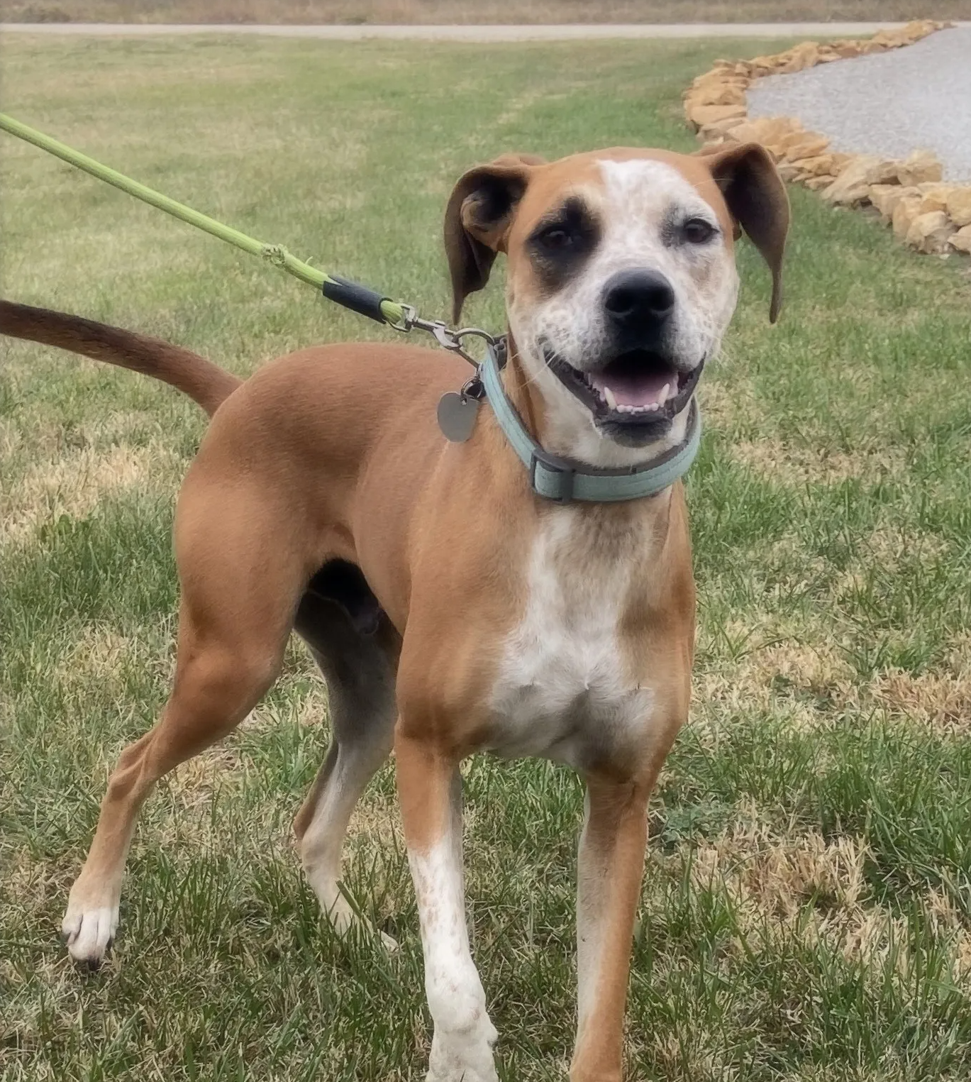 This is Rocky and we do not know his breed! He seems to have some lab, some shepherd, some heeler and maybe a dash of boxer? He is 2 yrs old, neutered, mostly housebroken (needs a refresher course) and loves kids! He is good with other dogs also. Rocky needs an active family as he has tons of energy and will jump up and down with excitement...so a bit of training would not be a bad idea!!!