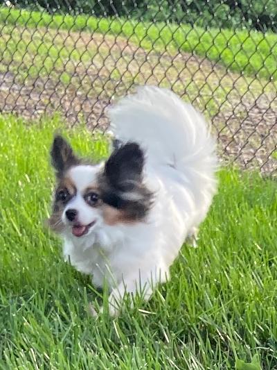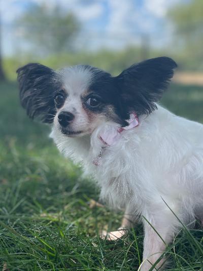 Wanda (needs new name) just turned seven and is a purebred Papillon. She was given up by the breeder (yay!!) because she only produced one pup...smart gal. She is spayed and current on shots and the sweetest thing in the world. She is timid, but loves to sit in your lap but she runs around the house with lots of energy. They have a lifespan of around 15 yrs.