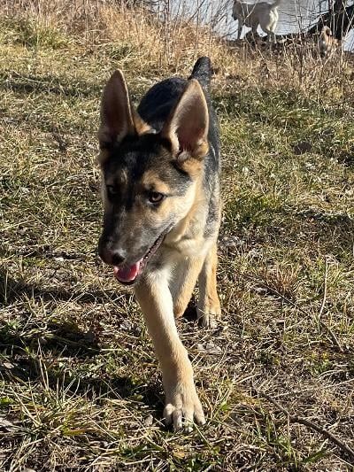 If you are looking for an adorable, all around lovable puppy, Jasmine is surely the one for you. She is a shepherd mix of some sort...who knows. She is your all around Heinz 57 variety. Jasmine weighs 20 lbs, is about 4-5 months old and will be spayed on Monday. I am guessing she will probably not be more than 30 lbs but not sure. She adores other dogs, plays with all of them...large and small...and loves to run and play in the fields. Jasmine must go to a home with another dog..or two. She will not be adopted as an only dog. Jasmine is good with kids also....no aggression at all