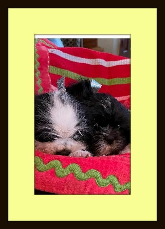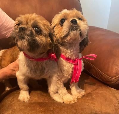 Gigi and Jax are two twelve week old Shih Tzus. Gigi looks like a purebred, Jax a mix. They are now spayed and neutered and current on shots. They weigh about 6 lbs each and are absolutely stunning. These pups are bonded and will only be adopted together to a family with a fenced yard. They were born here when mom was brought to me, pregnant, and rescued from an auction. The pups are healthy and happy!!!