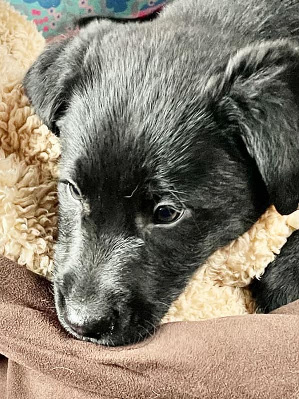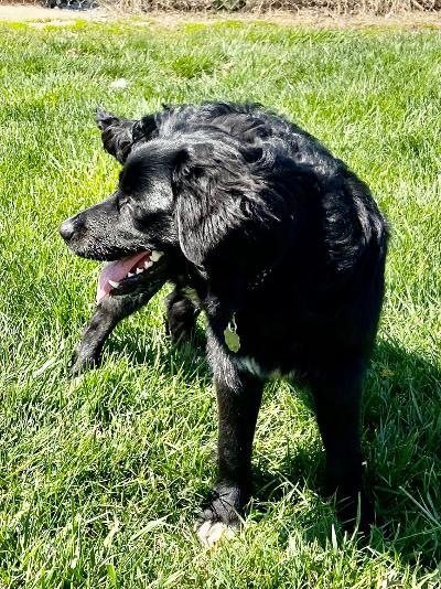 Kylee is 7 months old and energetic. She came from a family with children and was crated so she needs a lot of exercise. Kylee is friendly and playful and would benefit from having another doggie friend who can play with her. She weighs about 40lbs and has a glassy black curly coat.