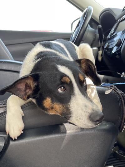 Sam is a 20 lb male Rat Terrier!! He will be neutered on Friday and is already current on shots. He is super friendly and fun, and loves everyone. This little guy really just wants to be petted and hugged, plus he loves to run and play but does not stray far. He is five months old and absolutely adorable.