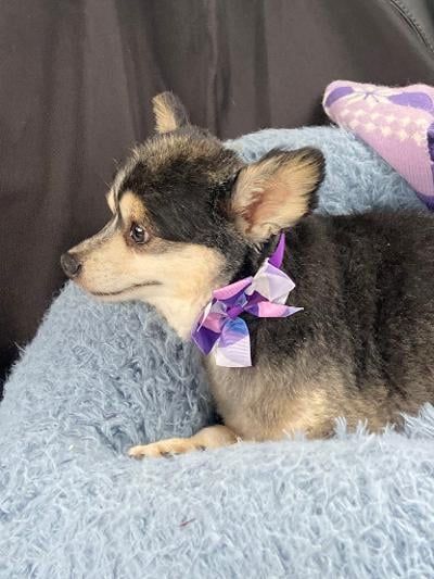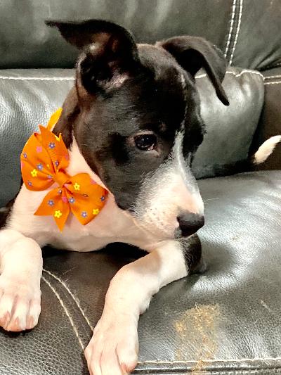 Susie is 4 months old, weighs 8 pounds, spayed and current on shots. She is playful and loving and tons of fun. Her three legs do just great and she doesn't even know she is missing one. Susie is very lively and would benefit from another small dog as a playmate. I do not think a cat will do!